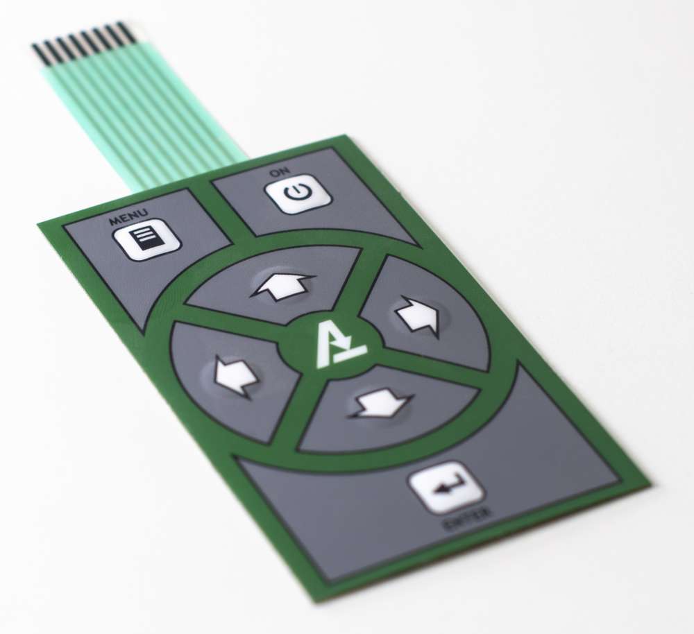 Пленочные клавиатуры без тактильного эффекта представляют собой полностью плоские многослойные конструкции, где нажатие клавиш происходит без выраженного механического отклика или «клика». Такие изделия идеально подходят для приложений, где приоритет отдается минимальной толщине, бесшумной работе и максимальной герметичности. Наша компания производит пленочные клавиатуры под ключ, предлагая плоские варианты для приборов, где важны гигиена, скорость отклика и эстетичный внешний вид.