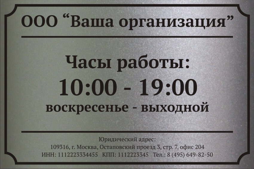 Информационные таблички из металла — это надежные изделия, предназначенные для передачи важных данных, инструкций, обозначений и контактной информации в условиях интенсивной эксплуатации. Они помогают организовать рабочие процессы, упростить ориентирование и обеспечить доступность сведений для сотрудников, посетителей и обслуживающего персонала. В ассортименте металлических шильд информационные таблички занимают одно из центральных мест благодаря универсальности, эстетичности и способности сохранять презентабельный вид годами.